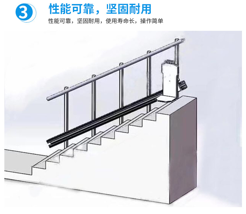 斜掛式輪椅升降平臺(tái)被設(shè)計(jì)應(yīng)用在家居住宅和公共場(chǎng)所中的樓梯。它緊湊合理的折疊平臺(tái)可以在不使用的情況下輕巧的折疊起來(lái),為樓梯節(jié)省足夠的空間,完全不影響他人的通行。是商用和家用無(wú)障礙輪椅通行的理想解決方案。升降平臺(tái)全自動(dòng)運(yùn)行無(wú)需人工干預(yù),自動(dòng)折疊、歸位;平臺(tái)即將到達(dá)/遠(yuǎn)離著陸點(diǎn)時(shí),自動(dòng)減/加速;非接觸式及接觸式感應(yīng)障礙物提前停止運(yùn)行,障礙物移開(kāi)自動(dòng)繼續(xù)運(yùn)行。