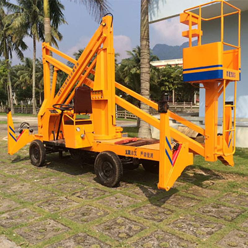 車載曲臂式升降機:把曲臂式升降機安裝在汽車上,利用汽車動力驅(qū)動升降。適合遠(yuǎn)路程的野外高空作業(yè)。